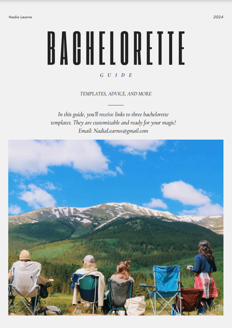 In this guide, you’ll receive links to three bachelorette templates that will ensure you go down in history as the best Bachelorette Planner of all time. You'll receive the: